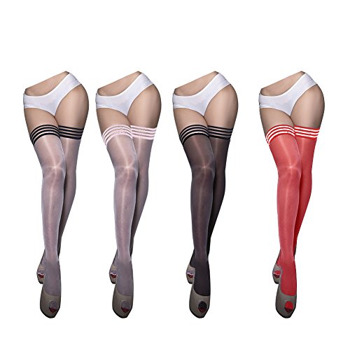 -. Title : Women's Antiskid Silica Gel Lace Top Sheer Shiny Thigh High Silk Stockings (4 Pairs)