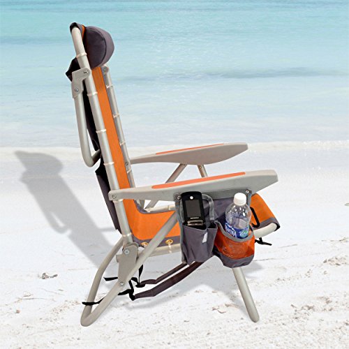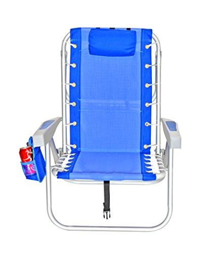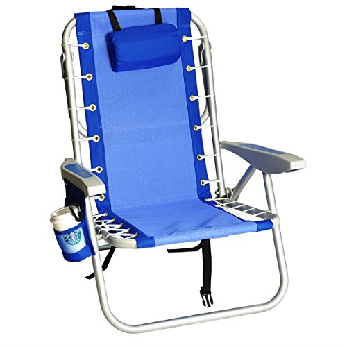 Amazon.com The Rio Ultimate Backpack Chair with Cooler is an aluminum frame chair, with 240-pound maximum weight capacity, that adjusts to five unique positions from upright to full recline via the "towel rack" folding incline support bar. Once situated in the sand, beach-goers will appreciate the cushioned pillow, molded and cushioned arm rests, and breathable textilene sling lace-up cover. A rear-access zippered carry pouch provides storage of small essential items, and the insulated cooler compartment will keep your beverages and snacks frosty. When it's time to head home or further down the beach, the entire lightweight package collapses to a backpack-style carrying configuration with padded, adjustable shoulder straps. About Rio Founded in 1947 by Bob Cohen as All-Luminum, and now run by his sons Warren, Mark, and Ira, Rio is the oldest manufacturer operating in the outdoor furniture category today, recognized in the industry for reliability and putting customers first. Rio believes in providing top value and design, not just cut-rate prices. 0