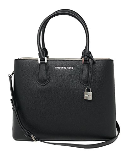 Michael Kors Adele Large Leather Satchel Handbag in Black/Cement