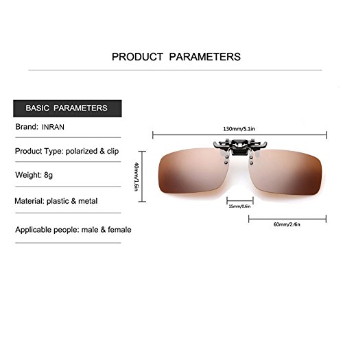 Hassle-free Warranty— INRAN clip on sunglasses provide any defective product will be full refunded service. And easy to clip on any prescription glasses.