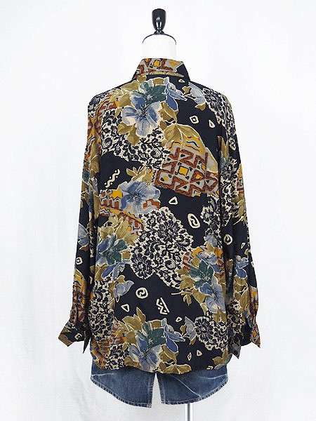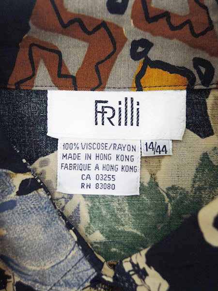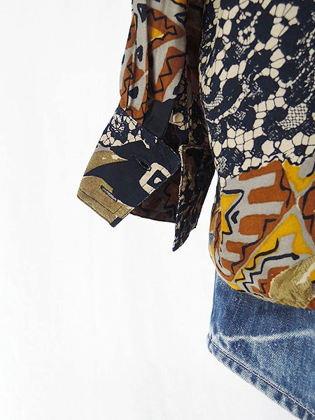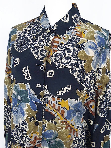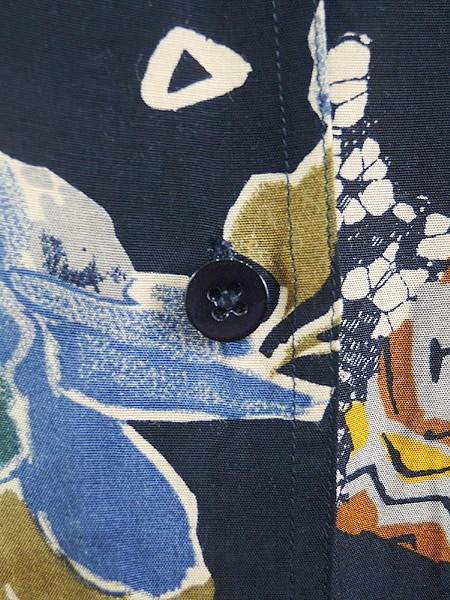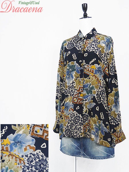 Ladies ブランド- カラー紺ベース・青・カーキ メール便不可 コンディション★★★ 素材ビスコース(レーヨン) 表記サイズ14・44 実寸サイズ 着丈 72 cm 身幅 59 cm 肩幅 50 cm 袖丈 55 cm ※ウエスト・ヒップ以外は平置き採寸