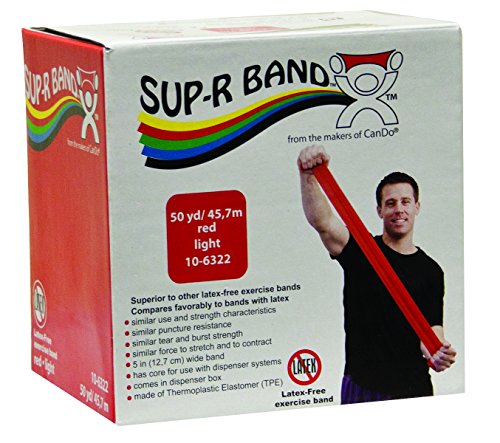 Studio : Fabrication Enterprises Publisher : Fabrication Enterprises Binding : Misc. Product Description Sup-R Band is made from a premium latex free formula and excels compared to other exercise band: our TPE latex free formula has similar use and strength characteristics to latex exercise bands; similar puncture resistance; similar tear and burst strength; requires similar force to stretch and contract; 5" width; has core for use with dispenser systems; made of Thermoplastic Elastomer (TPE); color-coded in Thera-Band colors. Roll is packaged in a dispenser box. 50-yard roll has core that fits most dispenser racks. Simply unroll desired length of exercise band from dispenser box and cut with scissors. 0