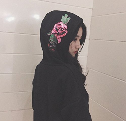 -. Feature : トレンドのフラワー刺繍☆ピンクの袖ロゴ刺繍が可愛い、こなれ女子パーカー / クラッシュデニム、カットオフレギンス、トレンドのグレンチェック、花柄、ベロアボトムスと相性抜群!! / ストリート、原宿系、オルチャン、K-pop、HIPHOP、ロック、ダンス好き♪、文化祭、イベント、フェスにもおすすめ^^ / 薄手なので、上にGジャンやライダース、セーターやニットを羽織って、バラ刺繍を魅せるのも◎オールシーズン活躍!! / 【サイズ展開】M/L/XL/XXL【カラー展開】ブラック
