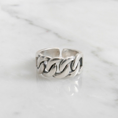볼드해서 정말 매력적인 체인반지입니다. 프리사이즈로 제작되었습니다. 최소 9호에서 최대 15호까지 추천해드립니다. 실버제품은 너무 많은 힘을 가하면 부러질수 있습니다. 체인의 굴곡부분을 유화처리를 해주어 멋스러움이 느껴집니다. 유화처리로 거뭇거뭇하게 보이는 현상은 하자상품이 아닙니다. 상품마다 유화처리된 상태는 다를수 있습니다. 남자분들께도 추천해드리는 멋진 반지:) 자세한 사이즈와 디테일은 상세페이지를 통해 체크해주세요.