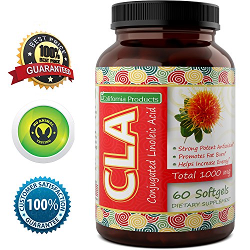 CLA (conjugated linoleic acid) is a naturally occurring fatty acid found in meat, dairy and safflower oil. California Products softgels deliver a potent plant complex of oils and fats whose main benefit is to lower body fat percentage by lowering the melting point for adipose fat stores in the body. Our complex is made of: -780 mg conjugated linoleic acid -150 mg oleic acid -30 mg palmitic acid -30 mg stearic acid -10 mg linoleic acid This potent combination delivers many benefits to users: weight loss, increase lean muscle mass, lower cholesterol, control blood sugar levels, heart & lung health, immunity and long-lasting energy. CLA can be taken as a powder, syrup or pill. Our softgels ensure easy use and quick, complete distribution of the natural oils and fats. Each California Products bottle of CLA Softgels is manufactured with care and attention. We hope you, like so many have, experience the health benefits and results of this amazing natural fatty acid plant complex. We offer a 100% satisfaction guarantee and money-back promise!Feature