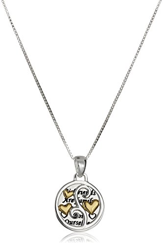 -. Feature : Sterling silver necklace with two-piece round pendant featuring message disc and overlay disc with hearts / Box chain with sP.R.Ing-ring clasp / Imported