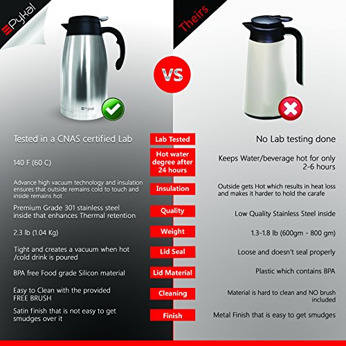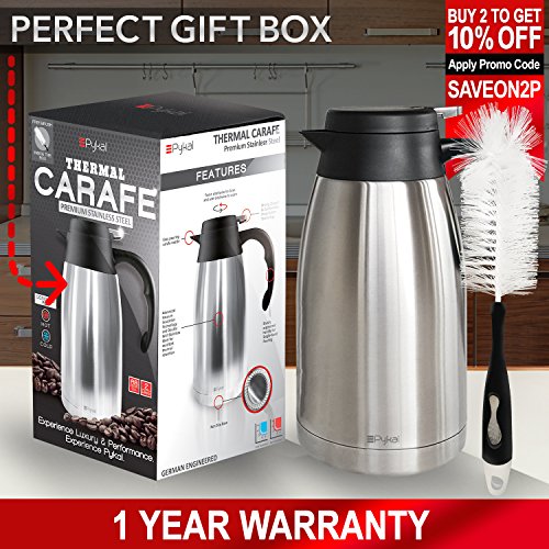 (Pykal)/Kitchen Dining/Coffee, Tea Espresso/DIRECT FROM USA/Thermal Coffee Carafe Stainless Steel - Heavy Duty, 24hr Lab Tested Heat Retention, 2 Liter 68o...