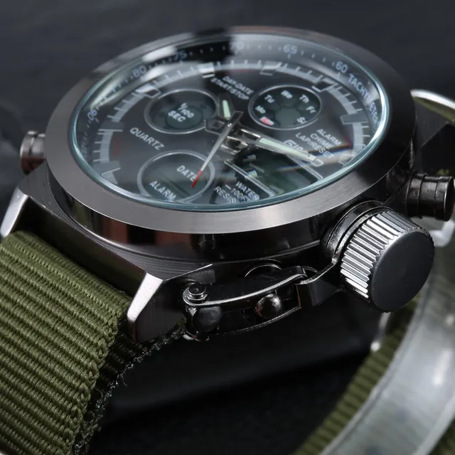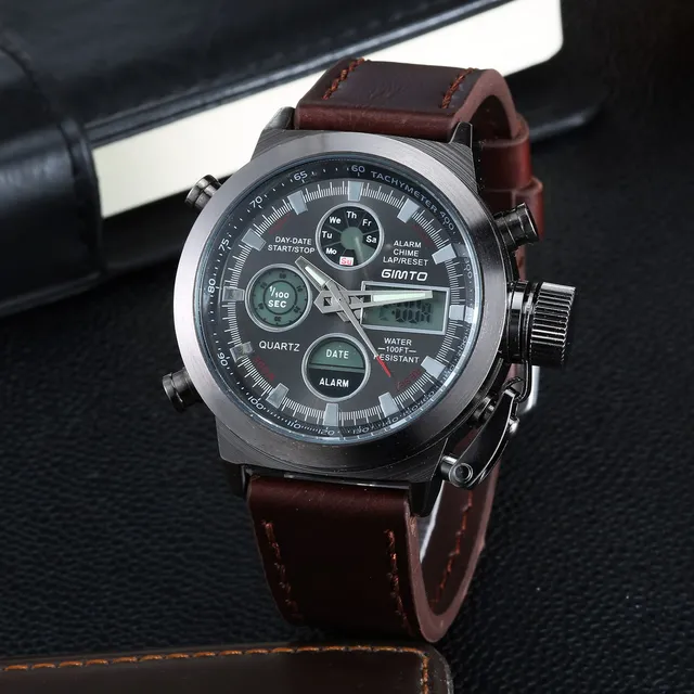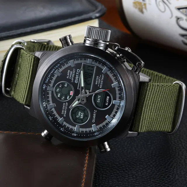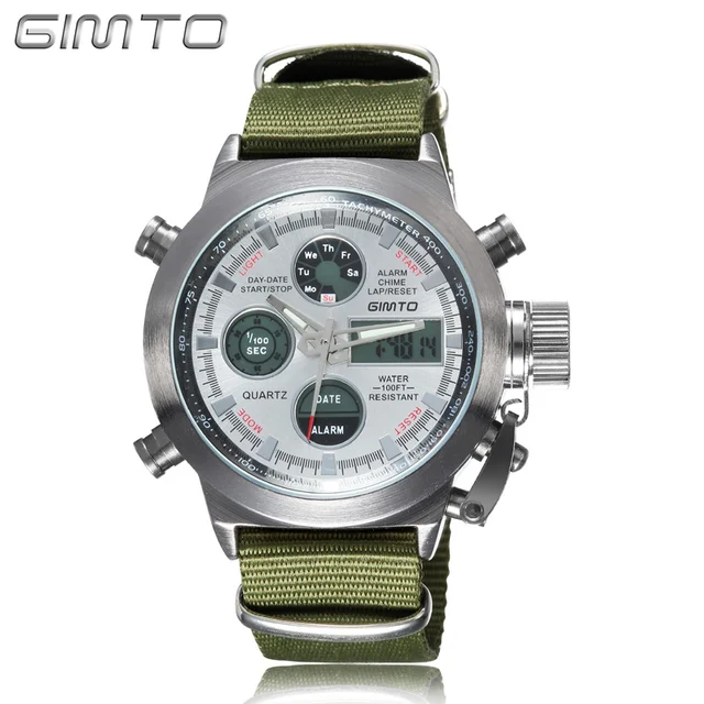 | [해외] 2017 브랜드 gimto 석영 디지털 스포츠 시계 남성 가죽 나일론 군사 육군 방수 듀얼 디스플레이 손목 남성 saat |