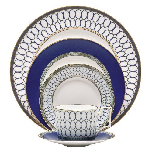 Studio : Wedgwood Publisher : Wedgwood Binding : Kitchen Product Description This stunning and ornate dinnerware pattern was inspired by decorative motifs used by Scottish neoclassical architect and designer Robert Adam, showcased on the pure oval forms of the Wedgwood archive cameo. This 5-Piece Place Setting includes everything needed for one guest's full dinner service; three beautiful fine china plates and a-cup with saucer; all rendered in a bold Wedgwood blue finish and decorated with intricate gilded detailing and a neoclassical laurel border inspired by patterns from the Wedgwood archives.