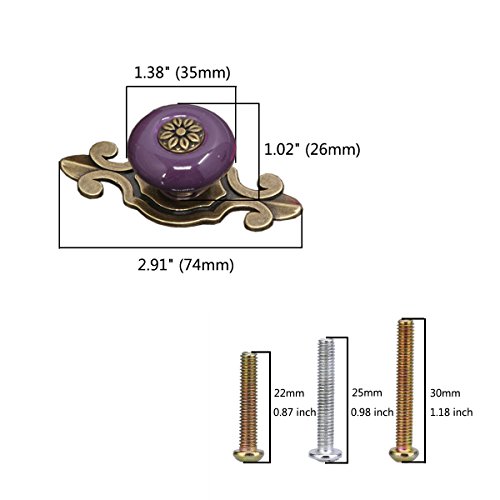 Corasays 2 IN 1 Vintage Ceramic Drawer Cabinet Knobs and Pulls for DIY Home Furniture Cabinet Dresser Cupboard Bin Door Handles, Pack of 8 (Purple-Black)