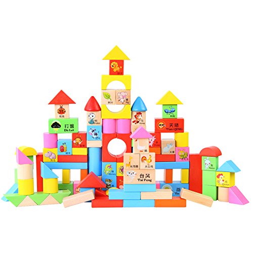 -. Title : BABUBALA Wooden building blocks new non-toxic and odorless 100 animals early childhood building blocks children's toys stacking