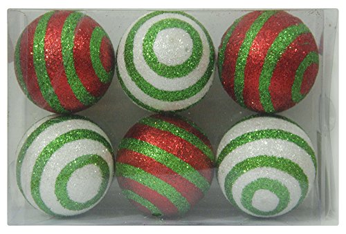 6 Pc Red Green White Striped Assorted Decorative Christmas Ball Set