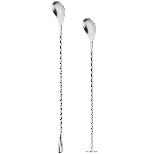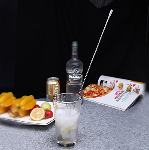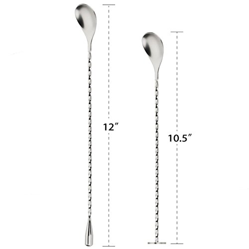 Product Description 12/10.5 inches in length cocktail mixing spoon can be applied to most of the deep cups, for cocktail or juice stir.