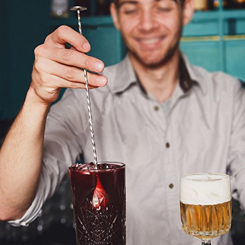 Spiral design, easy to rotate. Long, slender mixing spoon for reaching into cocktail shakers, comfortable grip, twisted stem provides swizzle stick action. 0