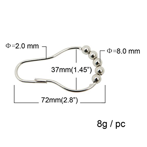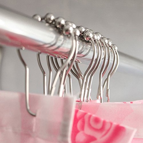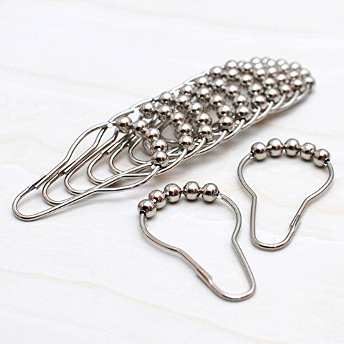Jayp Solid Metal Rolling Ball Rings Shower Curtain Hooks Chrome, 12pcs Pack