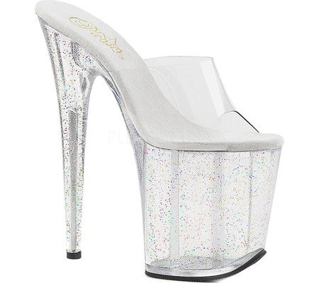 Product Description8 (20.25cm) heel, 4 (10.25cm) pf slide featuring mini iridescent glitters on entire platform bottom0