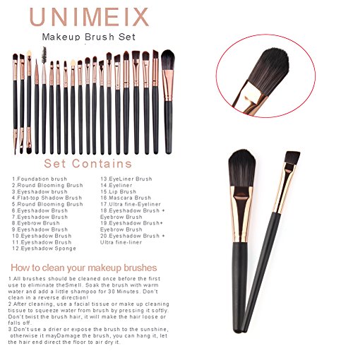 UNIMEIX 20 Pcs Professional Makeup Brush Set Powder Foundation Eyeshadow Eyeliner Lip Comestic Brushes ( Coffee)