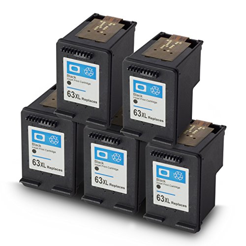 SOJIINK Remanufactured HP Replacement High Yield Black Ink Cartridge w/ Auto Ink Level Reset (No more low Ink Blinking) for F6U64AN / HP 63XL - 5PK
