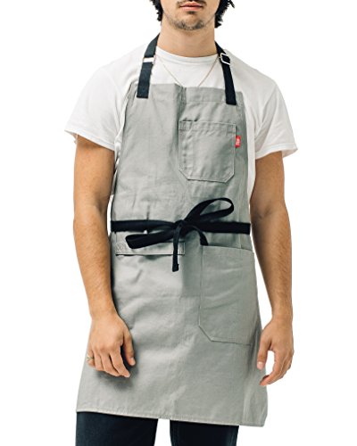 Cotton Kitchen Apron by Abbot Fjord - Mens and Womens Professional Chef Bib Apron - Adjustable Straps with Pockets and Towel Loop (Grey)