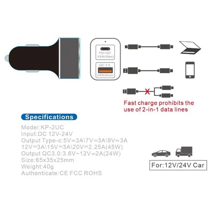 Type-C Output:DC 5V/3A 7V/3A 9V/3A 12V/3A 15V/3A 20V/2.25A (45W)