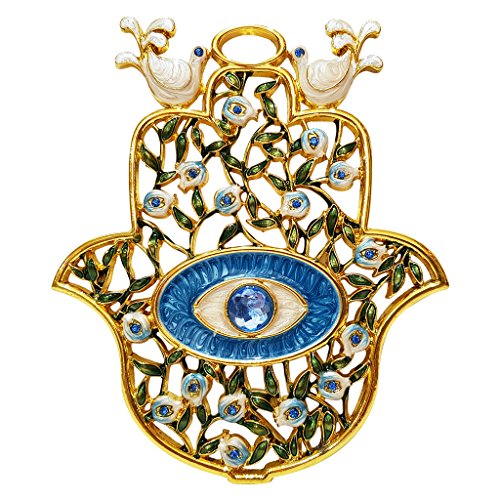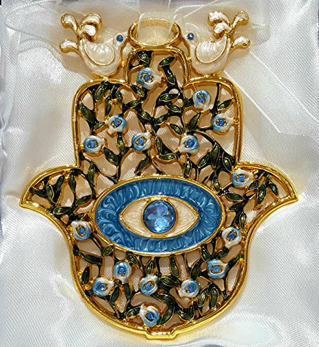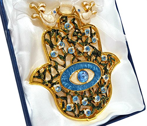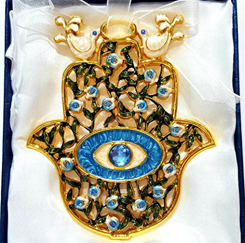 Blue Enamel Hamsa Home Decor Wall Hanging Crystal Evil Eye Protection Holy Land Gift in Box 5 inch Height