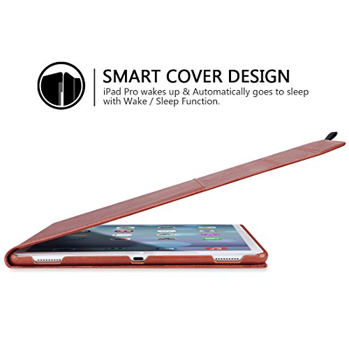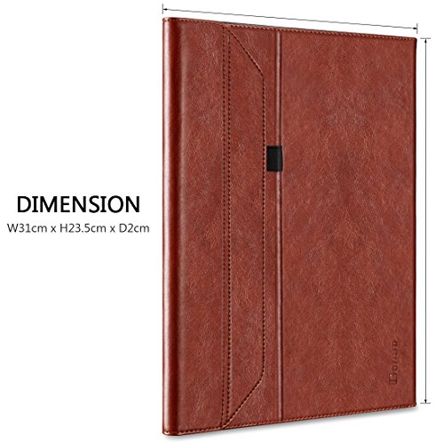 [Description] [Briefcase Style] [1 Year Warranty] Stylish Leather with Vintage Fashion Design_ Soft fabric lining_ Beautiful Tone-on-Tone Stitching decorates the Professional Look. [Invisible Storage Pouch & Magnetic Snap] Big outside slip pocket_ perfect for Documents_ Papers_ Passport_ Bills_ Power Cord_ etc. Concealed Magnetic Closure for Secure Shut when in standby mode. [Multiple Supports] Built-in Stand_ Several adjustable view angles_ a ultra useful function for Moviegoers. prop the device up like a computer screen and also offers a resting spot for an external Smart keyboard. [Stylus Holder & Smart Connector Cutout] Convenient to Grab your Apple Pencil whenever you want to sketch_ paint a watercolor portrait_ or draft a blueprint. Easy access to the Smart Connector_ Just attach your Smart Keyboard and start typing. Auto Wake / Sleep Function_ Simple Snap-on Leather Case_ Compatible with iPad Pro 12.9 inch only.