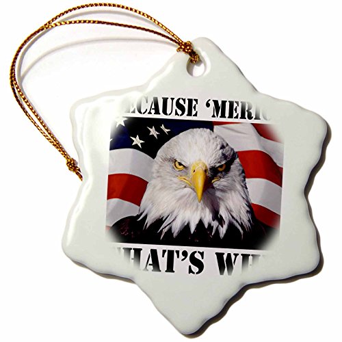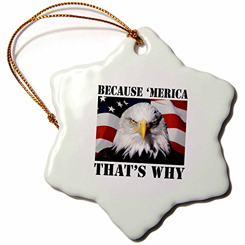 3dRose orn_149767_1 Because Merica That's Why. American Flag with Eagle-Snowflake Ornament, 3-Inch, Porcelain