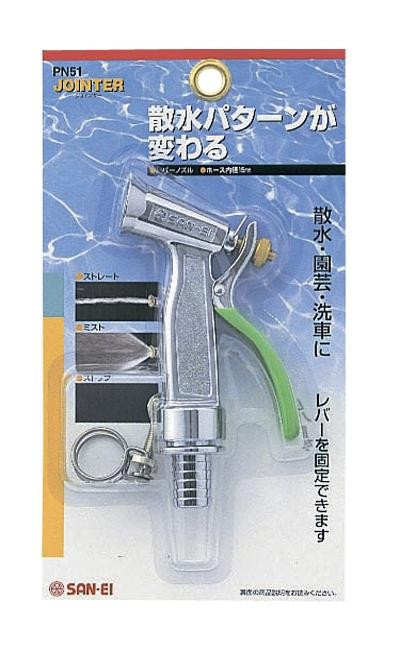 レバーの握り方一つで水の放射角度が調節でき、直射・噴霧・止水ができます。 製造国:日本 素材・材質:亜鉛ダイカスト 商品サイズ:90×30×155mm 仕様:・適合ホースサイズ内径:15mm 付属品:バンド1個※お届け地域により、別途運賃がかかる場合やお届けできない場合がございますので、お問い合わせ下さい。