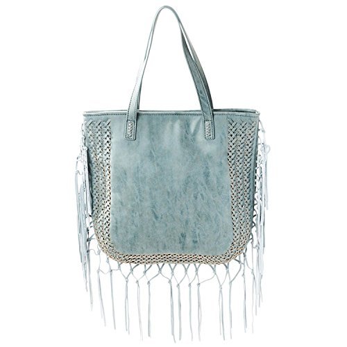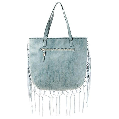 Product Description Steven introduces the "Shay", a fringe tote. This stylish handbag has a Magnetic enclosure on the top, a zippered interior pocket inside and a zippered pocket in the back, perfect for easy access for keys and your cell phone. BEFORE PURCHASING, PLEASE COMPARE THE SIZE OF THIS HANDBAG TO ONE OF YOUR OWN FAVORITE BAGS. 0