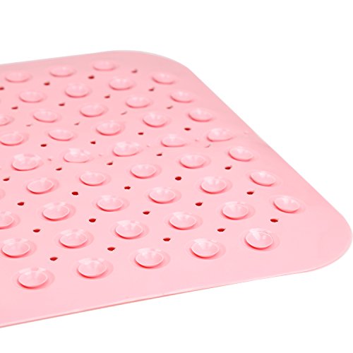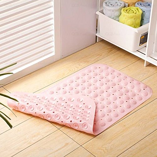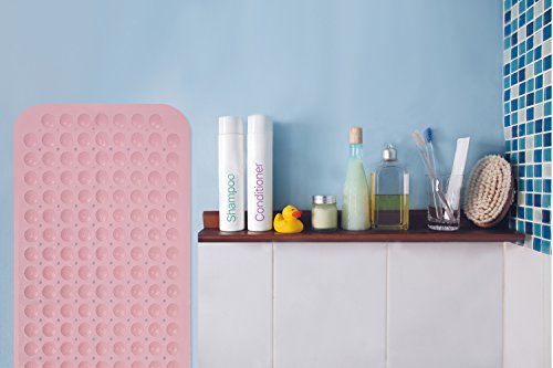 Rubber mat with powerful suction cups: The mat is made of rubber, unlike the plastic mat, it’s softer and feels more comfortable when standing. There are plenty of powerful suction cups at the bottom of the mat, provide strong grip against the smooth surface, no worries about sllipery