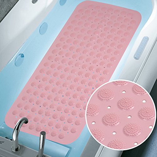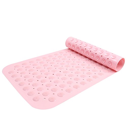 Super grip the tub with long size: The size is 16”x31”, with rectangle shape compatible to the tub, it can perfectly cover the tub and provides strong grip to the bottom. Also, it doesn’t move despite the tub is full of water