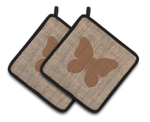 Caroline's Treasures Butterfly Faux Burlap & Brown Pair of Pot Holders BB1047-BL-BN-PTHD, 7.5HX7.5W, Multicolor