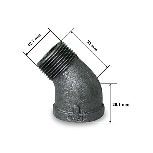 Everflow Supplies BMSF0012 1/2" 45 Degree Street Malleable Iron Fitting for High Pressures with Black Finish