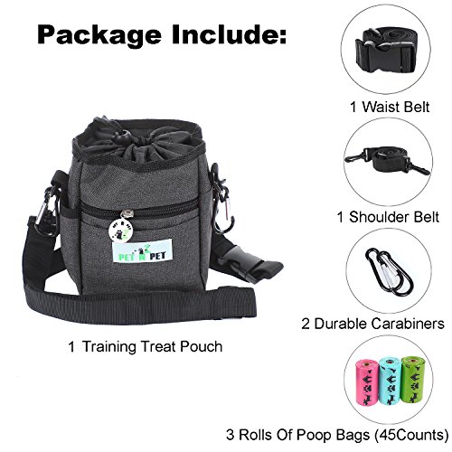 1 * Dog Treat Training Pouch 1 * Waist Strap 1 * Shoulder Strap 3 * Waste Bags (45pcs)