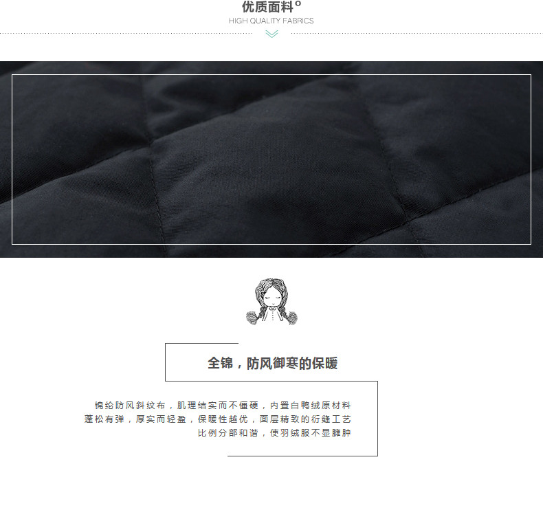 100%锦纶 里料:100%聚酯纤维 填充物:白鸭绒 含绒量:80% 充绒量:154.7g(S)164g(M) 173.3g(L) 182.6g(XL)