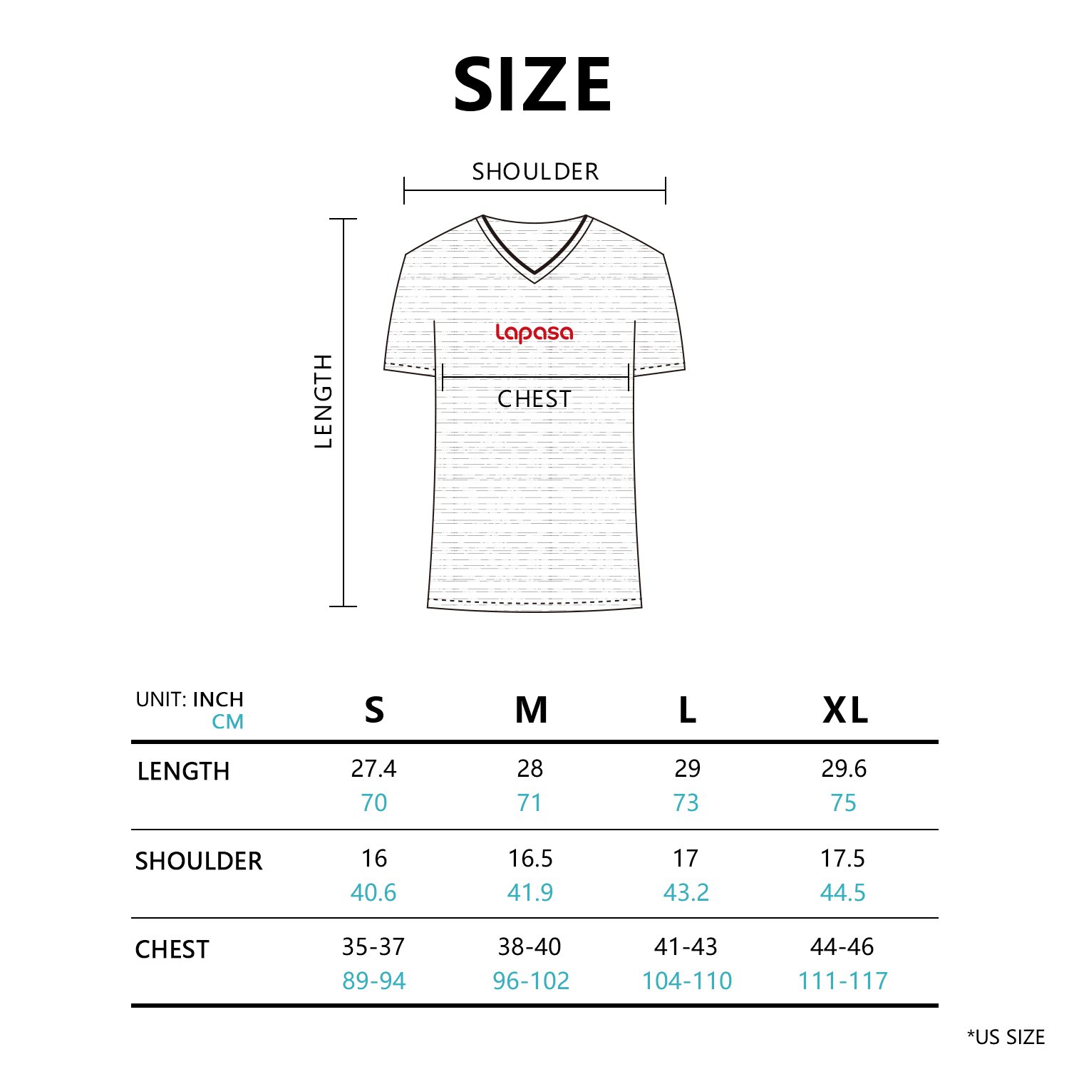 · S (JP - M): Length / 70; Shoulder width / 40.6; Width of the body / 89 - 94 cm