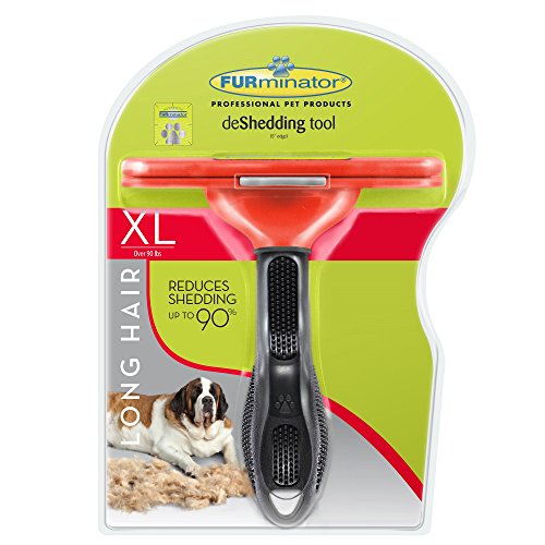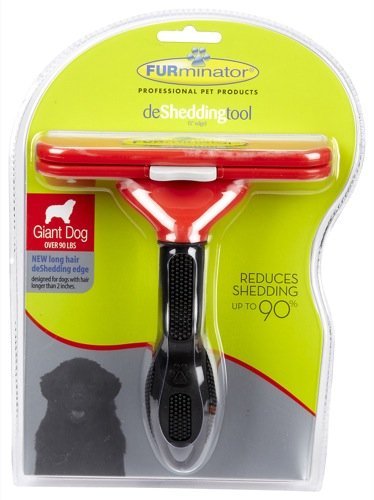 Studio : FURminator Publisher : FURminator Binding : Misc. Product Description By reducing shedding up to 90%, the FURminator deShedding Tool enables you to share your home with your dog, without surrendering it to his hair. The Long Hair deShedding Tool for Giant Dogs is specially designed for dogs that are over 90 pounds with hair that is longer than 2 inches. The long hair stainless steel edge reaches deep beneath your dog's long topcoat to safely remove undercoat and loose hair, The FURejector button cleans and removes loose hair from the tool with ease. 0