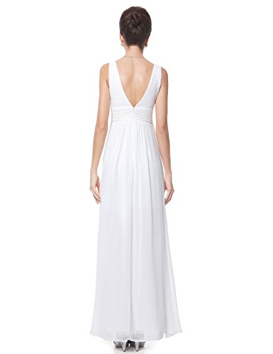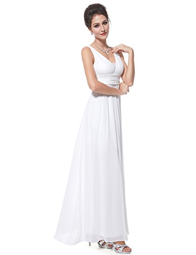 Double v-neck long evening dress. Padded enough for "no bra" option. Elegant ruched waist design creates a universally flattering silhouette. Simple, versatile design makes this dress appropriate for nearly any occasion. Concealed zipper up the back. Lining, no stretchFeature