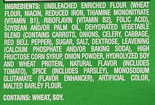 -. Feature : 8-ounce boxes of vegetable crackers / Made with real vegetables, including carrots, onions, celery, red bell peppers and tomatoes / Cholesterol-free; no trans fats; 6% RDA of iron and 4% each of calcium and Vitamin A per serving / Light, crisp and delicately spiced baked crackers with melt-in-your mouth flavor / Serve with soups and salads