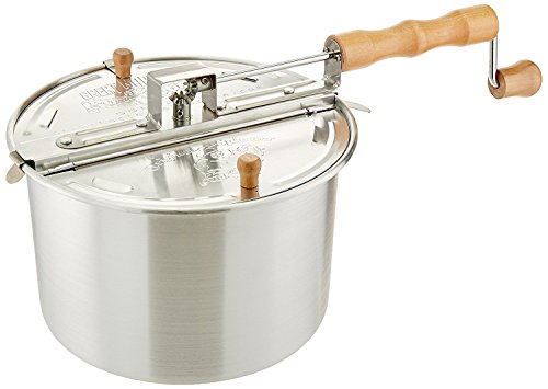 The Spinner Stovetop Popper was designed by popcorn scientists to make popping popcorn on the stove a breeze. Now one person can continually pop pan after pan of delicious popcorn without the investment of expensive and bulky popcorn poppers. Only one word truly describes the Spinner Stove top Popper - Awesome! The Spinner Stovetop Popper's innovative design allow moisture to escape during the popping process so your popcorn will be hot, crunchy, and mouth-watering. Our innovative stirring handle keeps the popcorn from burning as you pop batch after batch. Features: Make 5 Quarts of Popcorn in Just Minutes, Unique Spinner Stirring Mechanism, Real wood handles and knobs! Easy Clean Up: Just wipe with a paper towel and store for later use, Great Northern Popcorn Quality and Dependability! NOTE: Not for use on induction stove tops.Feature