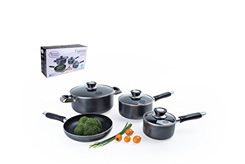 -. Title : Aramco 7 Piece Alpine Gourmet Aluminum Non-Stick Coating Cookware Set, Gray