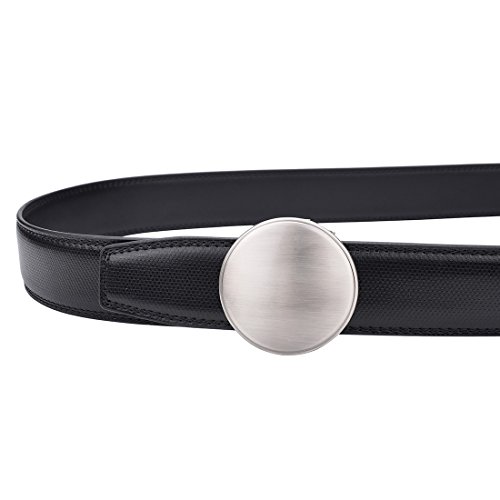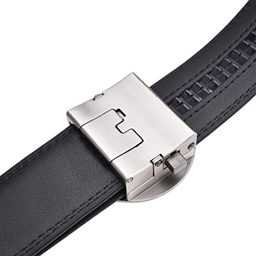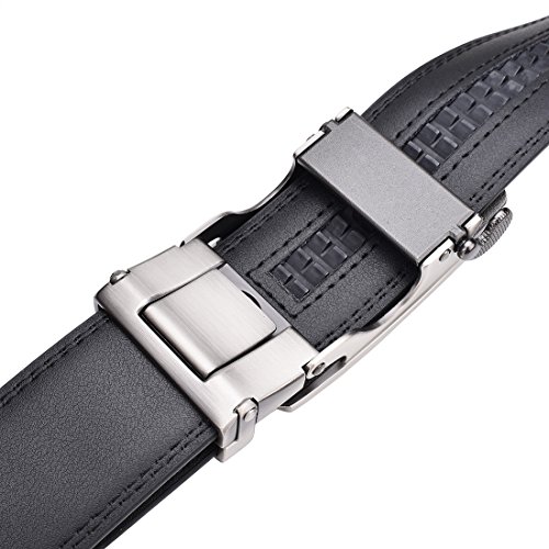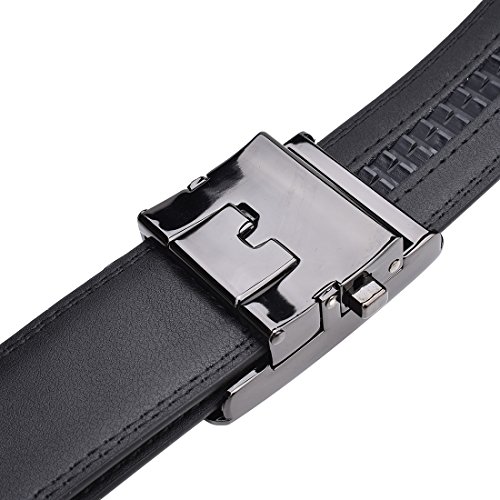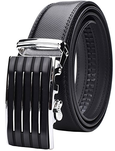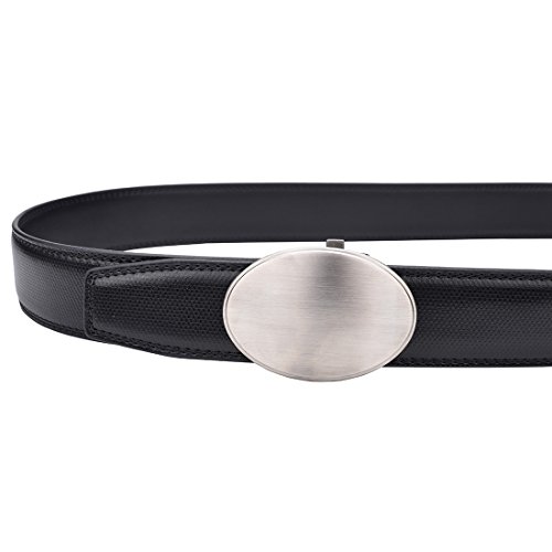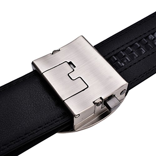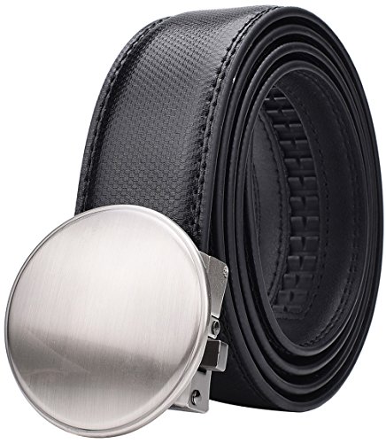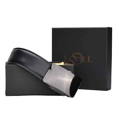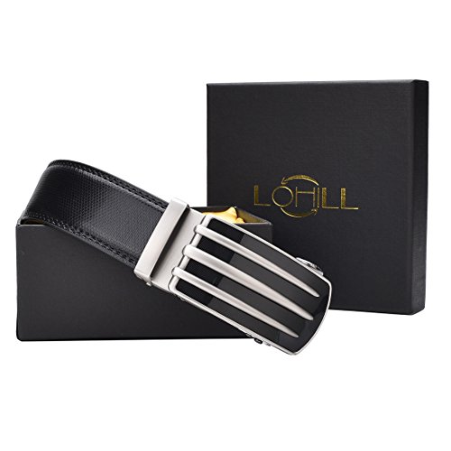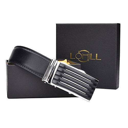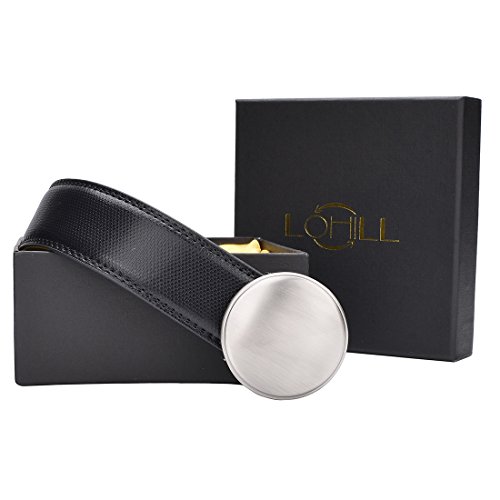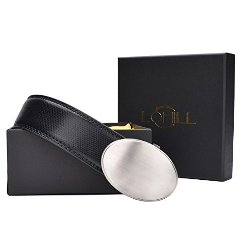 Lohill leather belts for men are the epitome of elegant form meeting practical function. we creates fine crafted auto lock belts of extraordinary comfort, durability and functionality. HIGHER IN QUALITY Lohill dress belt is made with high-quality genuine leather. They are crafted with fine leathers, repel moisture and age gracefully. Our sturdy, lightweight, scratch resistance slide belt buckles are made with Zinc Alloy to create a substance with greater strength and resistance to corrosion. FASHIONABLE Lohill offers an array of modern, and traditional belts for men. Our automatic belt buckles are suitable for everyday wear as well as special occasions. Lohill's formal belts for men coordinate with any dress suit. PERFECT FIT For an absolute great fit just follow these two simple steps: 1. It's quite easy to tighten and release. Slide in the strap to tighten and the belt auto locks, lift the buckle and pull to release. 2. Cut the leather belt to your desired size and secure it firmly with closure. You're no longer restricted to 1-inch size adjustments, but can get a perfect, and custom-fit all the time! LOYAL SERVICE Customer satisfaction is our mission. Lohill is here to provide our esteemed customers a most pleasant experience. Our 45 days return policy, plus 180 days warranty, enables you a risk-free purchase!? PACKAGE INCLUDING ? 1 x nice gift box ? 1? x leather strap ? 1 x removable Buckle ? 1 x? A Pick - a small screwdriver,use to pick the buckle to avoid damage your fingers ? 1 x manual instruction - to show you how to adjust the length of the belt to make a perfect fit