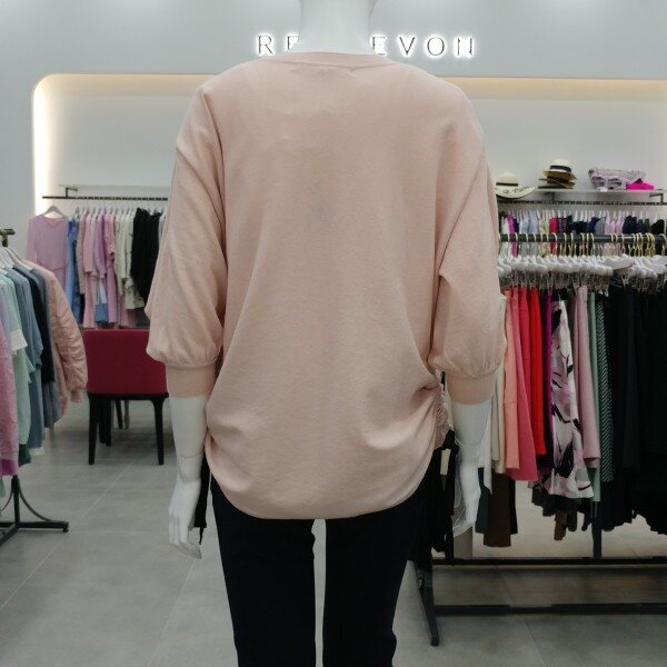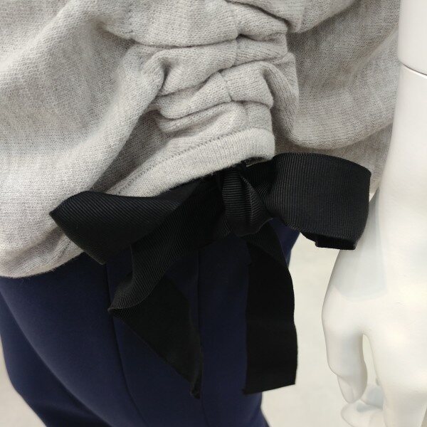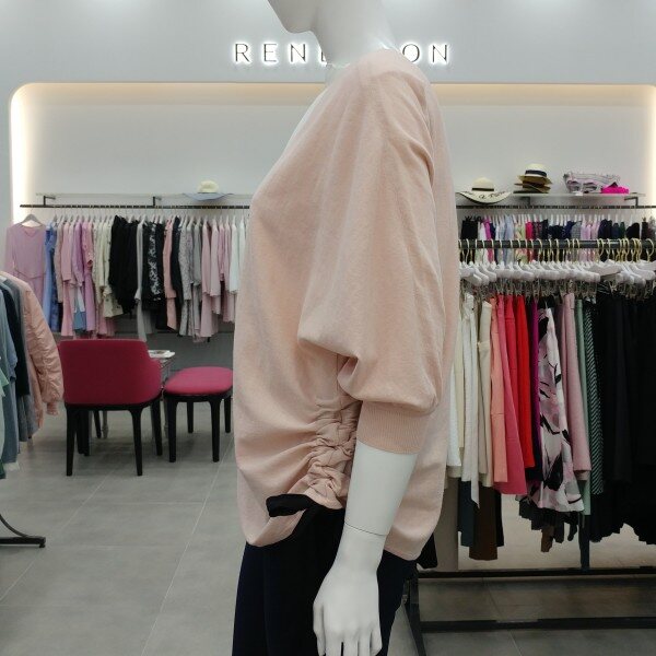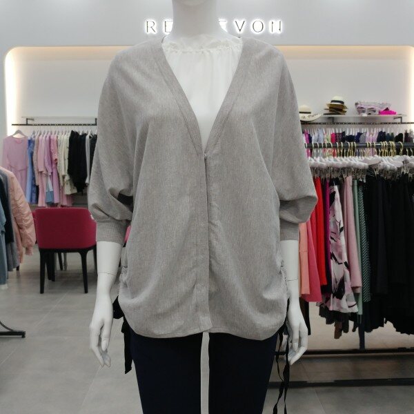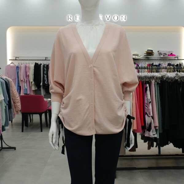 옆선의 셔링과 리본 디테일이 포인트인 가디건 돌먼소매로 이너 척장이 용이.