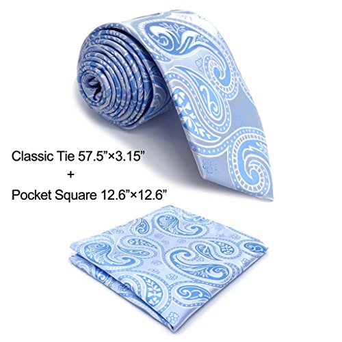 | ShlaxWing New Baby Blue Paisley Ties For Men Party Wedding Neckties XL Extra Long 63" |