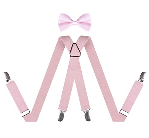 - Boys Bow Ties and Suspenders Available in 10 Colors to best meet your taste and child's wardrobe.Just choose the right size and the color you wish and you will be delighted of your child's adorable appearance.High quality classic matching pink suspenders and bow tie ensures a sharp look for any occasion.