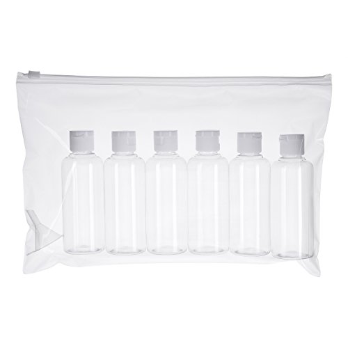 Hotop 6 Pack Transparent Plastic Air Flight Travel Bottle Set with Small Funnel for Flight, Airport, Holiday (100 ML)