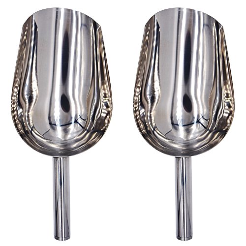 Buthneil stainless steel Scoop Bar Ice Scoop, Dry Goods Scoop, Candy Scoop, Spice Scoop with Contoured Handle, 7" Length x 4.5" Width, 2 Pack