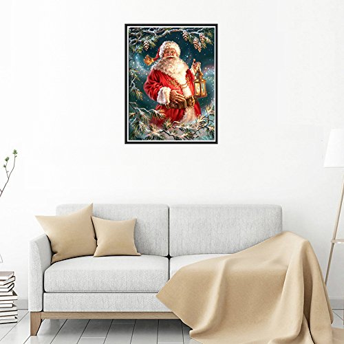 TianMai Hot New DIY 5D Diamond Painting Kit Crystals Diamond Embroidery Rhinestone Painting Pasted Paint By Number Kits Stitch Craft Kit Home Decor Wall Sticker - Santa Claus Christmas Tree, 25x30cm