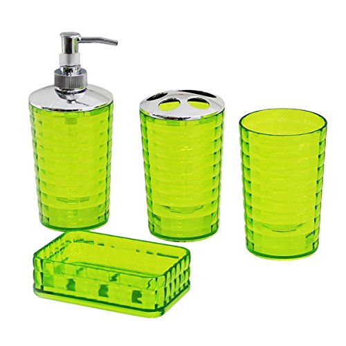 Simplistic Acrylic 4-Piece Bathroom Accessory Set - Clear Green