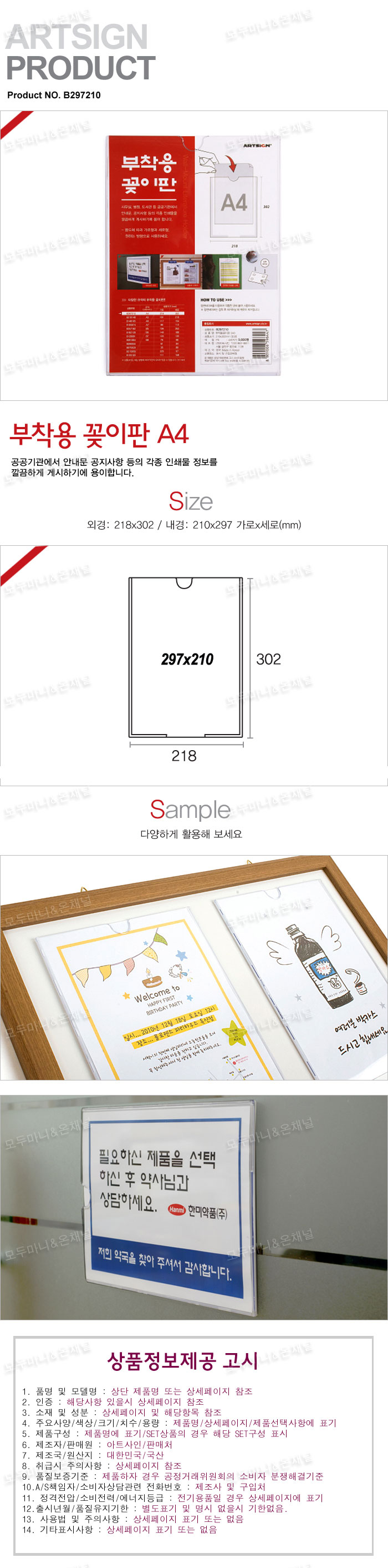 - 품명 및 모델명부착용꽂이판(A4)